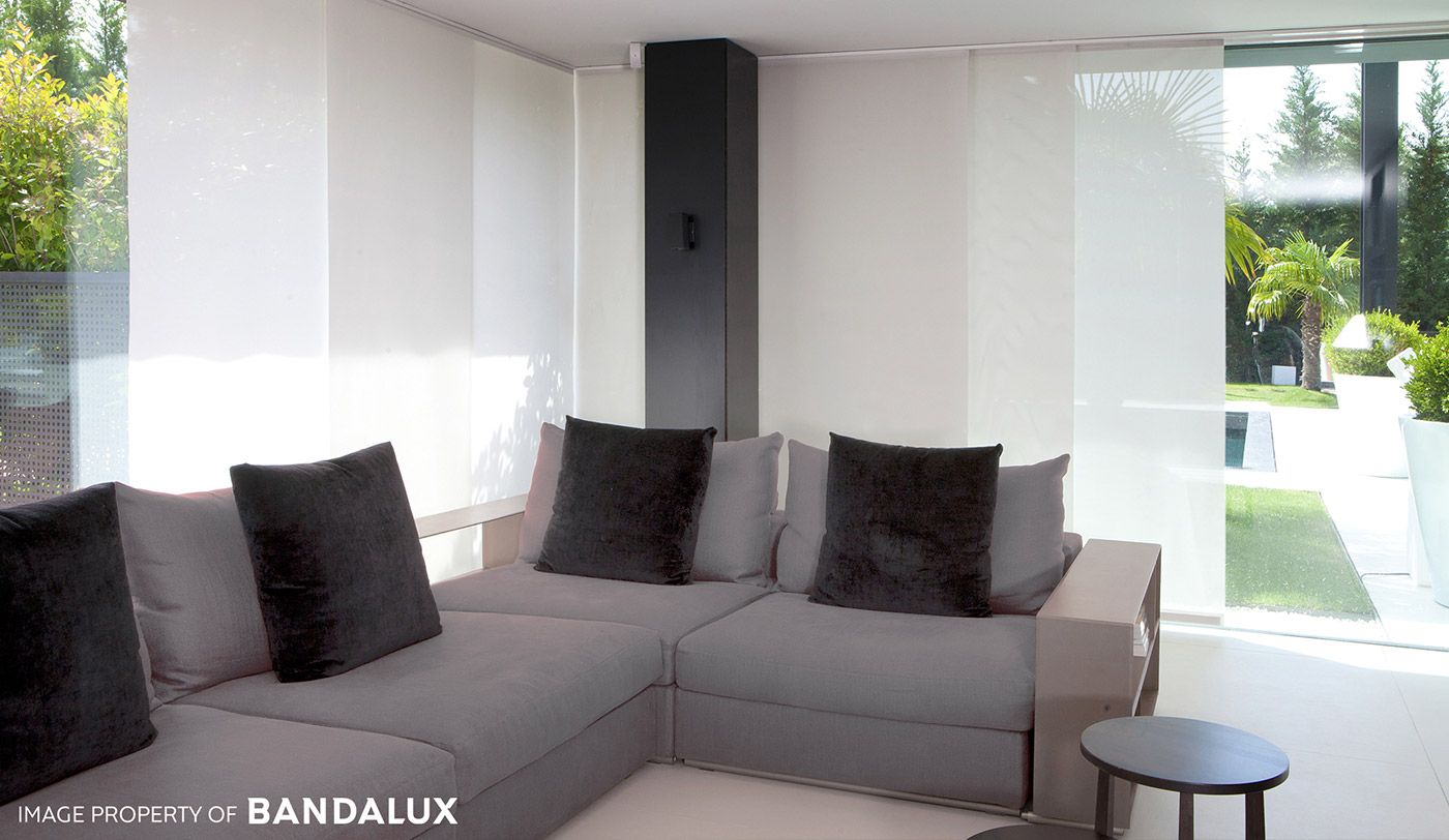 Los paneles japoneses son la cortina ideal para grandes paños de pared (puertas correderas, terrazas), en cuya instalación ha sido necesario unir varias guías. Se desmonta fácilmente, simplemente estirando una tira de velcro, con lo que se pueden lavar asiduamente, a voluntad del cliente.